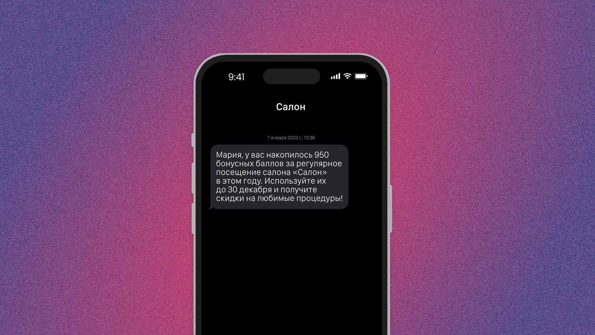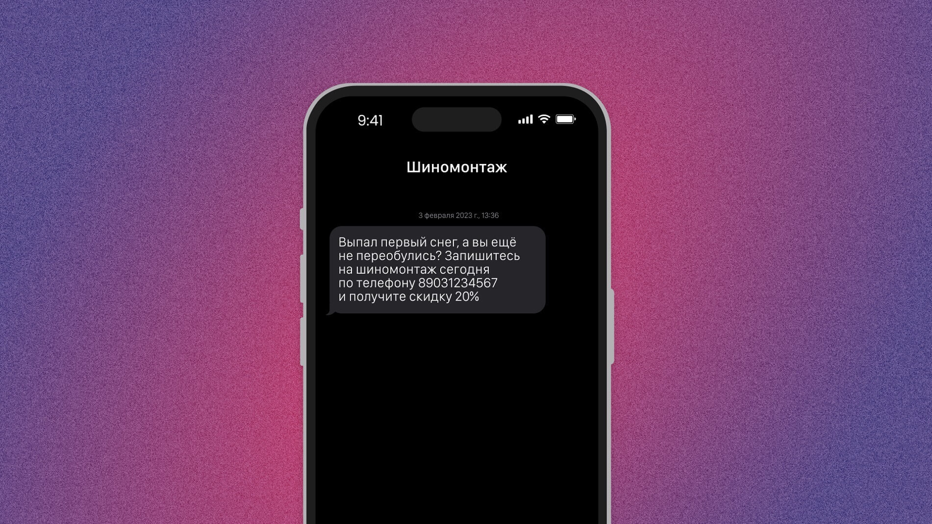 Так, магазин спортивного оборудования может предложить скидки или другие бонусы на товары для конкретных видов спорта — йоги, фитнеса, горных лыж. В тексте SMS обязательно нужна отсылка к интересам адресата.