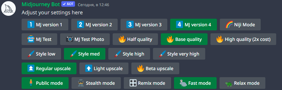 - Напишите в чат команду /settings и укажите нужные настройки.