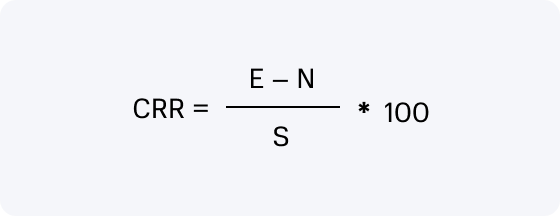 CRR=((Число всех клиентов к концу срока измерения – Клиенты, которые пришли за этот срок)/Количество клиентов на начало срока измерения)*100